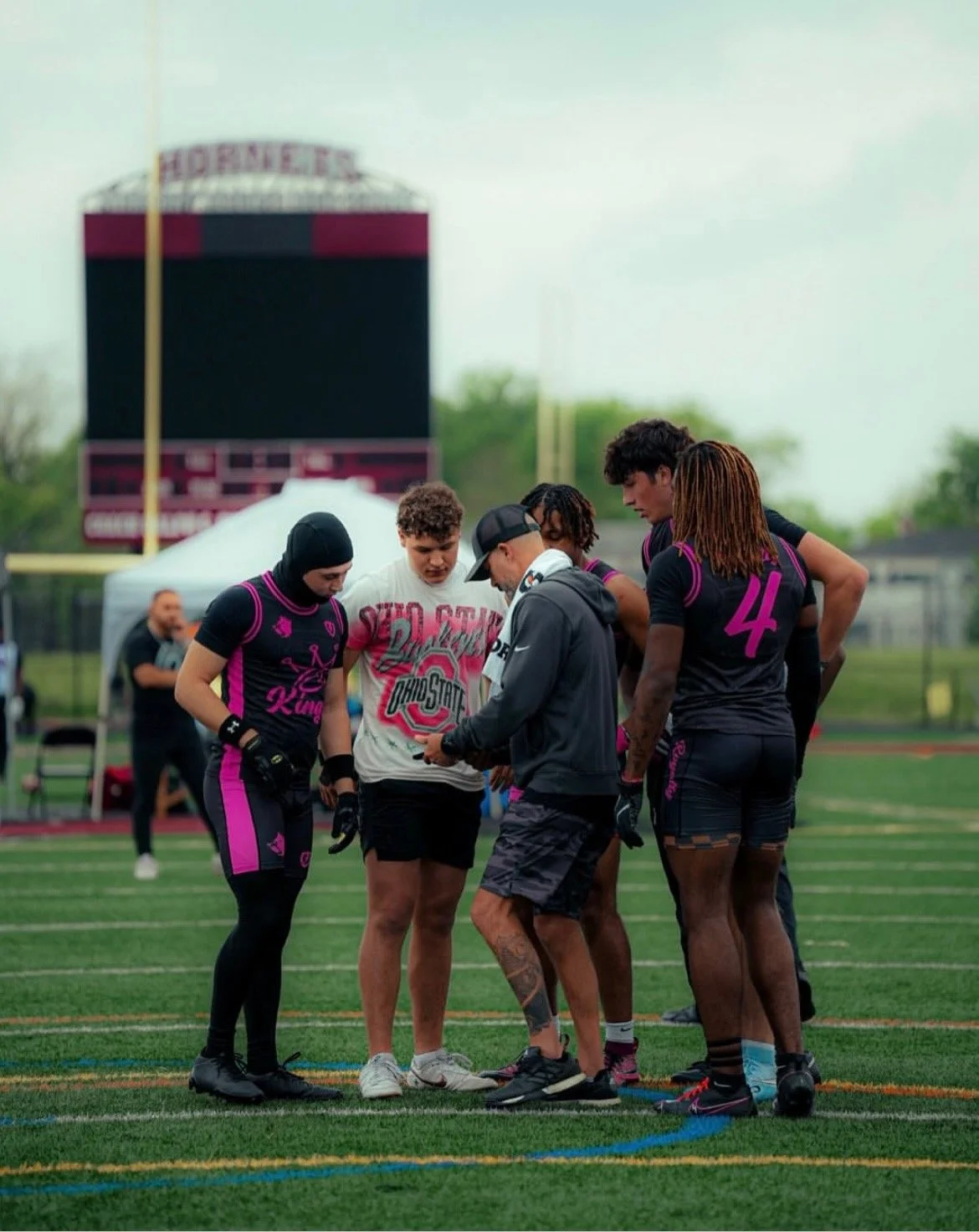 One of our biggest goals we aim to do every year is help develop your athlete into a more advanced overall football player while being with the Kings. With that being said, we hold weekly training sessions that are position specific as well as competitive to continue to sharpen your players athletic ability. On top of that, we also aim to hold weekly zoom meetings to consistently help break down and understand film, while aiming to help grow your players football IQ to help translate to Friday night lights.